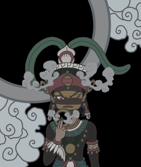 テスカトリポカは「煙を吐く鏡」であらゆるものの心を読み、世界中を見通すと言われます。
